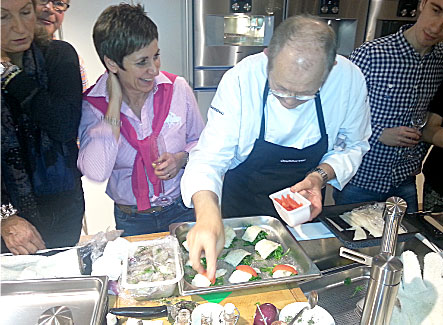 Begrüßung, Sektempfang, Flammkuchen vom Backstein, Lachs zartgegart mit Wasabigurkensalat, Ofenkartoffeln auf dem Backblech